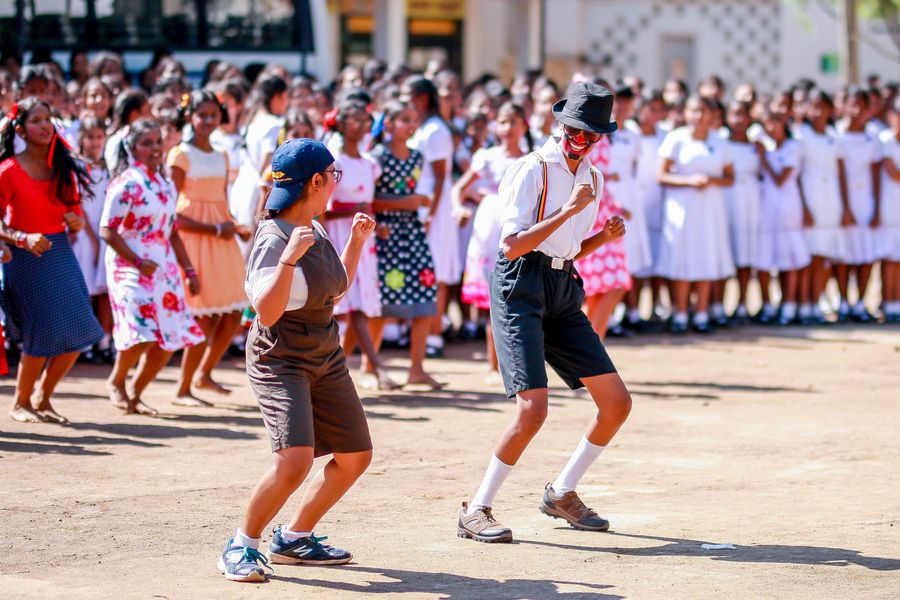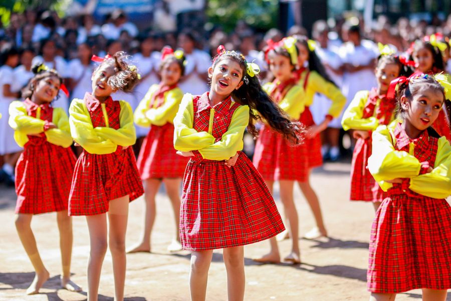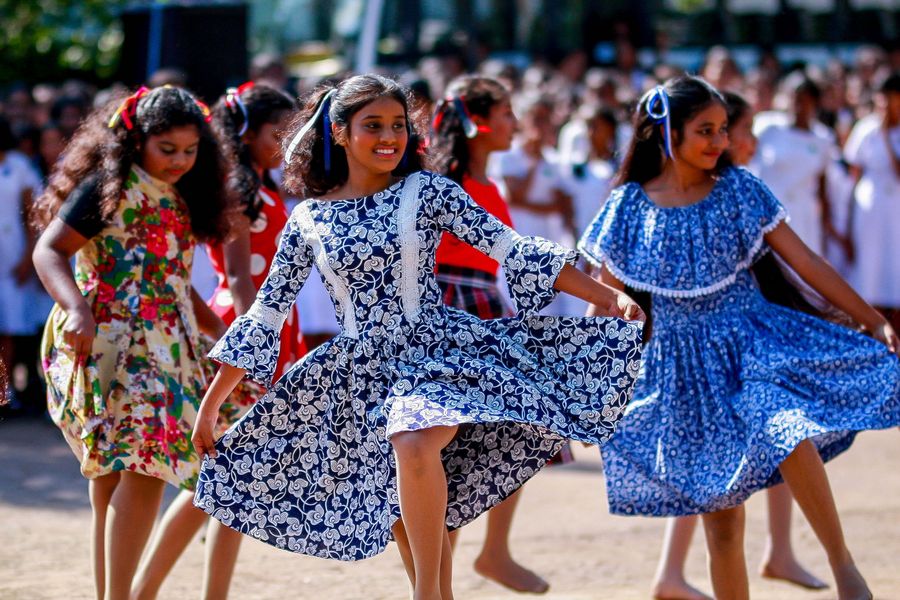 Girls dance to celebrate Children's Day at Gothami Balika Vidyalaya in Colombo, Sri Lanka, on October 1, 2019. (Photo by Gayan Sameera/Xinhua)