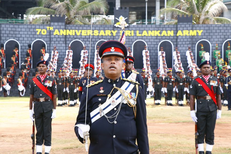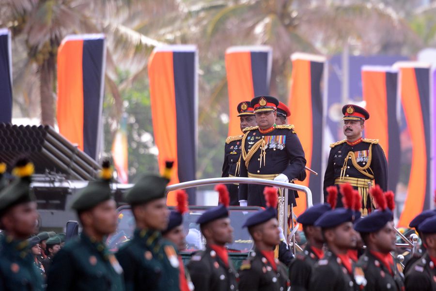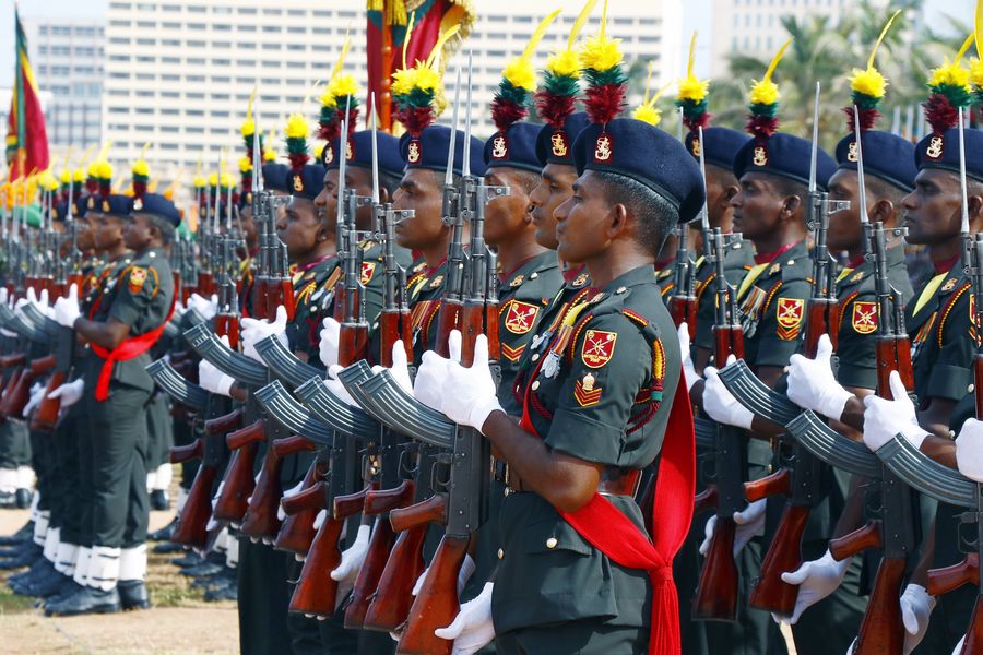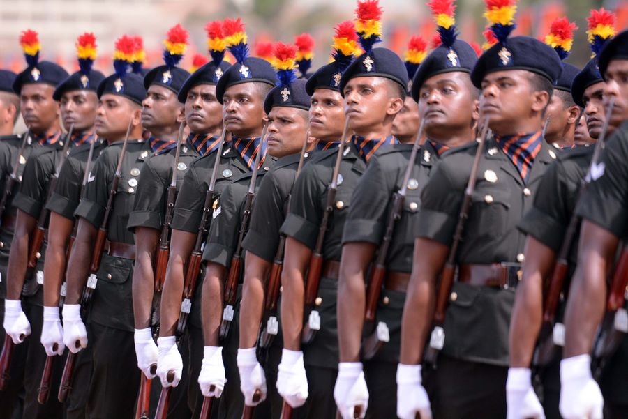 Soldiers attend a ceremony marking the Sri Lanka Army's 70th anniversary in Colombo, Sri Lanka, on Oct. 10, 2019. (Photo by Gayan Sameera/Xinhua)