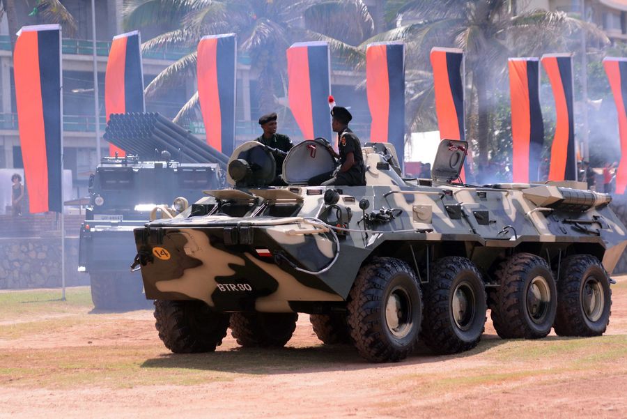 Military vehicles are seen during a ceremony marking the Sri Lanka Army's 70th anniversary in Colombo, Sri Lanka, on Oct. 10, 2019. (Photo by Gayan Sameera/Xinhua)