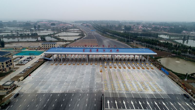Aerial photo taken on Oct. 16, 2019 shows the Guandu Yellow River Bridge in Zhengzhou, central China's Henan. (Xinhua/Hao Yuan)