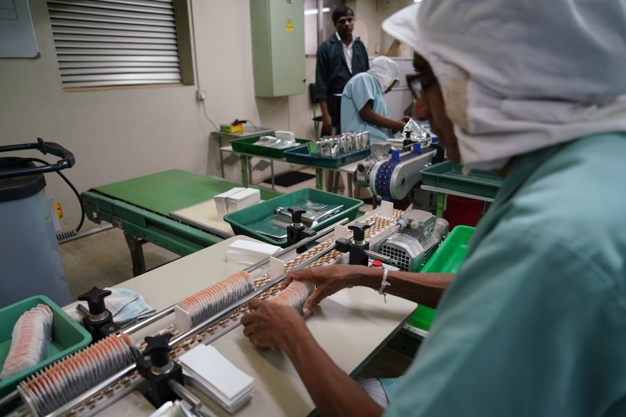 Staff members work on the production line of organic teas at Stassen Exports Private Limited in Colombo, Sri Lanka, Oct. 28, 2019. (Xinhua/Tang Lu)