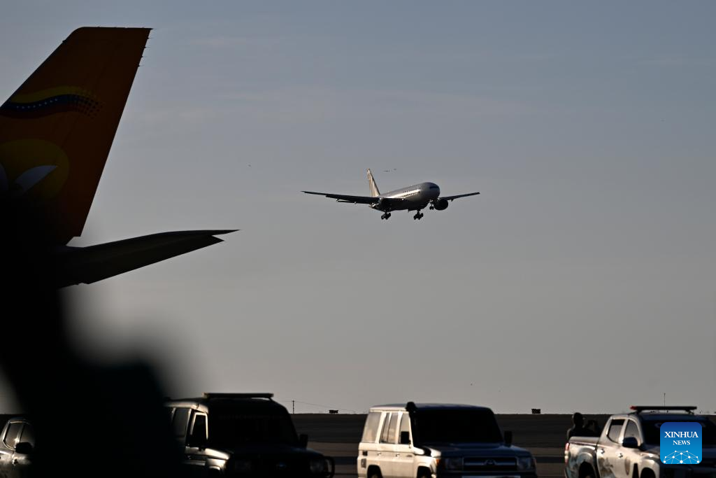 A migrant repatriation flight lands at Maiquetia International Airport near Caracas, Venezuela, Dec. 3, 2025. Venezuela has approved a U.S. request to resume migrant repatriation flights, the country's transport ministry said on Tuesday.