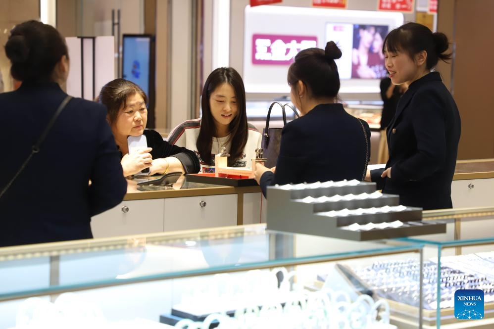 Consumers buy jewelry at a shopping mall in Xiamen City, southeast China's Fujian Province, Dec. 10, 2025. China's consumer price index (CPI), a main gauge of inflation, rose 0.7 percent year on year in November, data from the National Bureau of Statistics showed Wednesday. (Photo by Zeng Demeng/Xinhua)