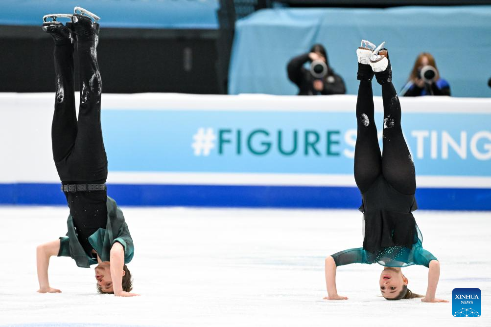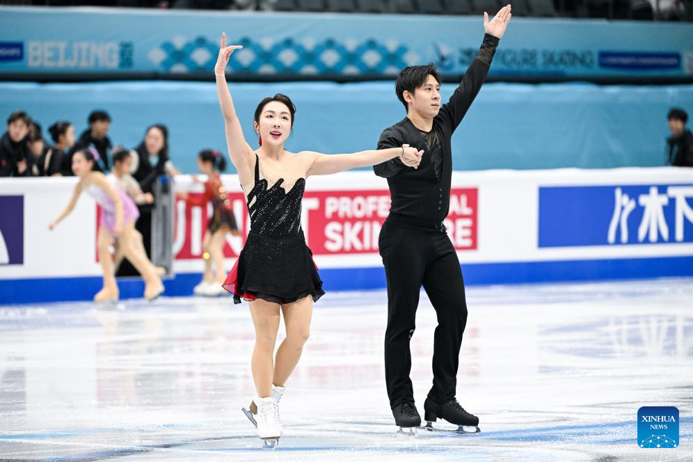Wang Shiyue (L) and Liu Xinyu of China perform during the ice dance rhythm dance at the ISU Four Continents Figure Skating Championships in Beijing, China, Jan. 22, 2026. (Xinhua/Ju Huanzong)