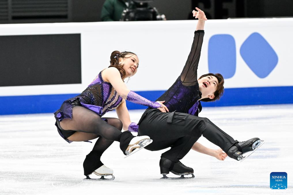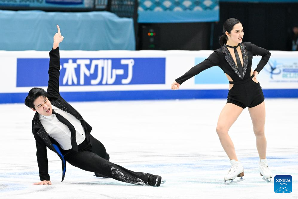 Yoshida Utana (L) and Morita Masaya of Japan perform during the ice dance rhythm dance at the ISU Four Continents Figure Skating Championships in Beijing, China, Jan. 22, 2026. (Xinhua/Ju Huanzong)