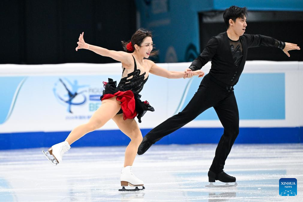 Lim Hannah (R)/Quan Ye of South Korea perform during the ice dance rhythm dance at the ISU Four Continents Figure Skating Championships in Beijing, China, Jan. 22, 2026. (Xinhua/Ju Huanzong)