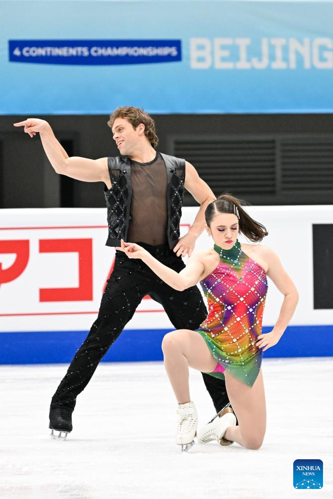 Caroline Green (R)/Michael Parsons of the United States perform during the ice dance rhythm dance at the ISU Four Continents Figure Skating Championships in Beijing, China, Jan. 22, 2026. (Xinhua/Ju Huanzong)