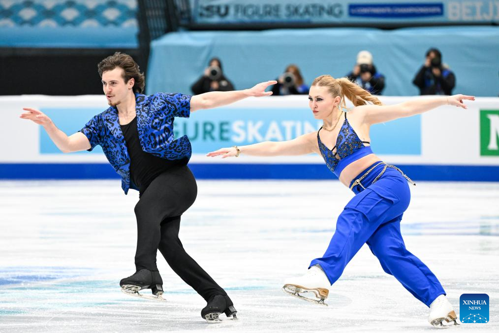 Emilea Zingas (R) and Vadym Kolesnik of the United States perform during the ice dance rhythm dance at the ISU Four Continents Figure Skating Championships in Beijing, China, Jan. 22, 2026. (Xinhua/Ju Huanzong)