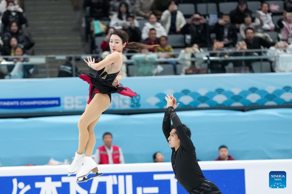Sui Wenjing (R) and Han Cong of China perform during the pairs short program at the ISU Four Continents Figure Skating Championships in Beijing, China, Jan. 22, 2026. (Xinhua/Xie Han)