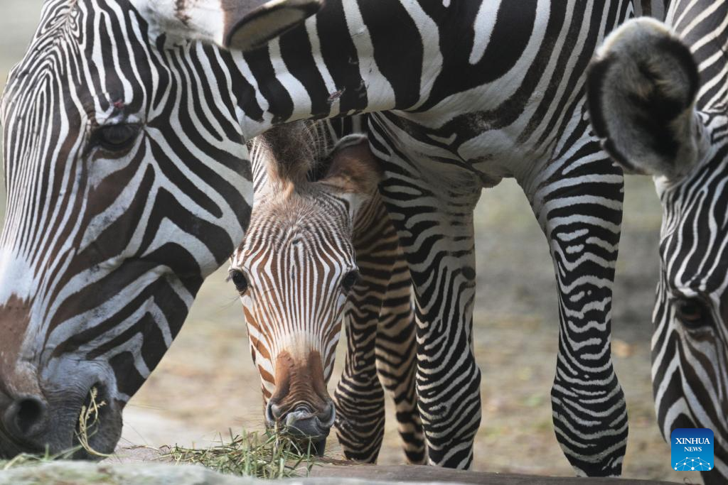 A female zebra foal is seen at the Singapore Zoo in Singapore, Jan. 22, 2026. The zebra foal was born here on Dec. 2, 2025. (Photo by Then Chih Wey/Xinhua)