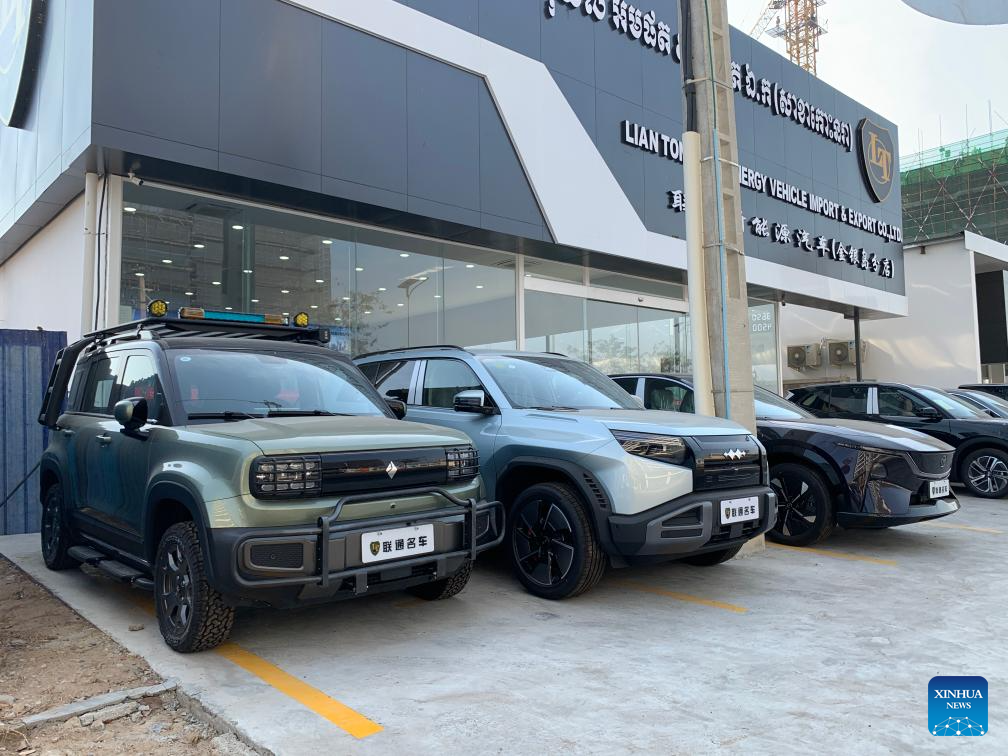 This photo taken on Jan. 27, 2026 shows a car showroom in Phnom Penh, Cambodia. Cambodia has registered a total of 9,065 electric cars or electric vehicle (EVs) as of 2025, according to a Ministry of Public Works and Transport's report on Wednesday. (Photo by Van Pov/Xinhua)