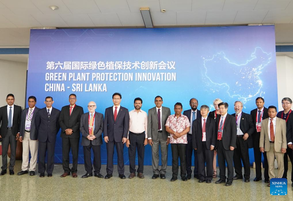 Participants pose for a group photo during the 6th International Conference on Green Plant Protection Technology Innovation in Colombo, Sri Lanka, Jan. 19, 2026. Experts and scholars in the field of plant protection and agriculture gathered Monday in Colombo, Sri Lanka, to exchange views at a high-profile international conference co-hosted by Chinese and Sri Lankan institutions. The 6th International Conference on Green Plant Protection Technology Innovation and China-Sri Lanka Agricultural Technology and Cultural Exchange Week opened at the Bandaranaike Memorial International Conference Hall in Colombo. The opening ceremony was attended by around 700 guests, including Chinese Ambassador to Sri Lanka Qi Zhenhong, heads of several Sri Lankan government departments, as well as experts and scholars from China, Sri Lanka, the United Kingdom, and France. (Xinhua/Wu Ziyu)