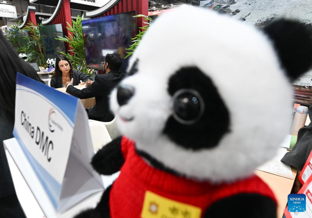 Photo shows the booth of China during the 2026 FITUR international tourism exhibition in Madrid, Spain, Jan. 22, 2026. The booth of China held its opening ceremony at the 2026 FITUR international tourism exhibition in Madrid on Thursday. (Xinhua/Cheng Min)