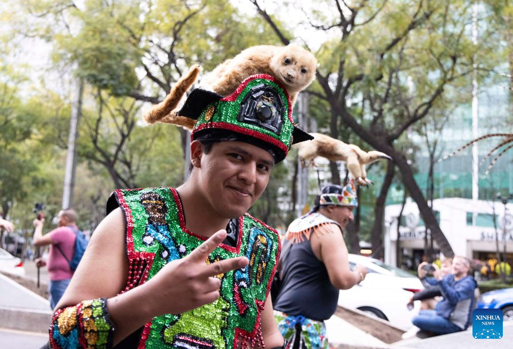 Costumed performers are pictured during the Villa-Zapata carnival in Mexico City, Mexico, on Dec. 6, 2025. The 11th Villa-Zapata carnival was hosted in Mexico City on Saturday. Folkloric dances, traditional music, and street processions were seen along the Paseo de la Reforma avenue during the event, promoting traditional Mexican culture while paying tribute to revolutionary leaders Emiliano Zapata and Francisco Villa in the Mexican Revolution of 1910-1920. (Xinhua/Li Mengxin)