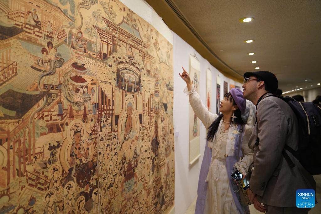 UNITED NATIONS, Dec. 9 (Xinhua) -- An exhibition showcasing Tsinghua University's research and design work inspired by the ancient art of Dunhuang opened Monday at UN headquarters.