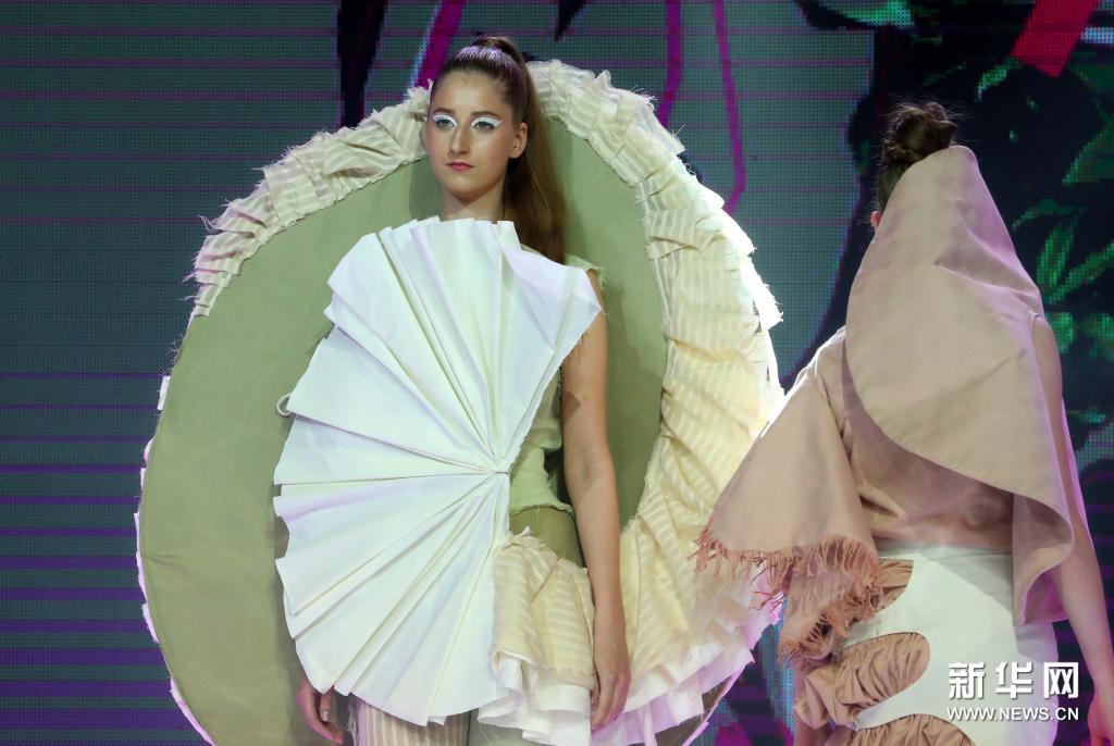 6月9日,在白俄羅斯明斯克,模特在時(shí)裝設(shè)計(jì)與攝影大賽上展示參賽作品。新華社發(fā)(任科夫攝)