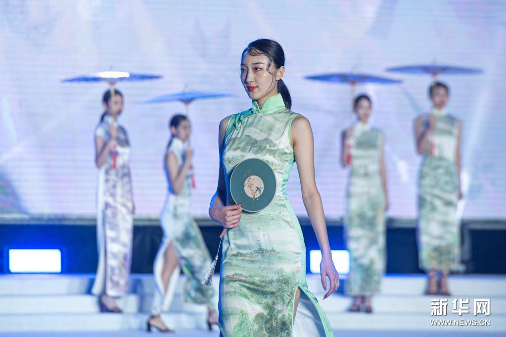 6月23日,模特在杭州亞運(yùn)服飾秀上展示服裝。新華社記者 江漢 攝