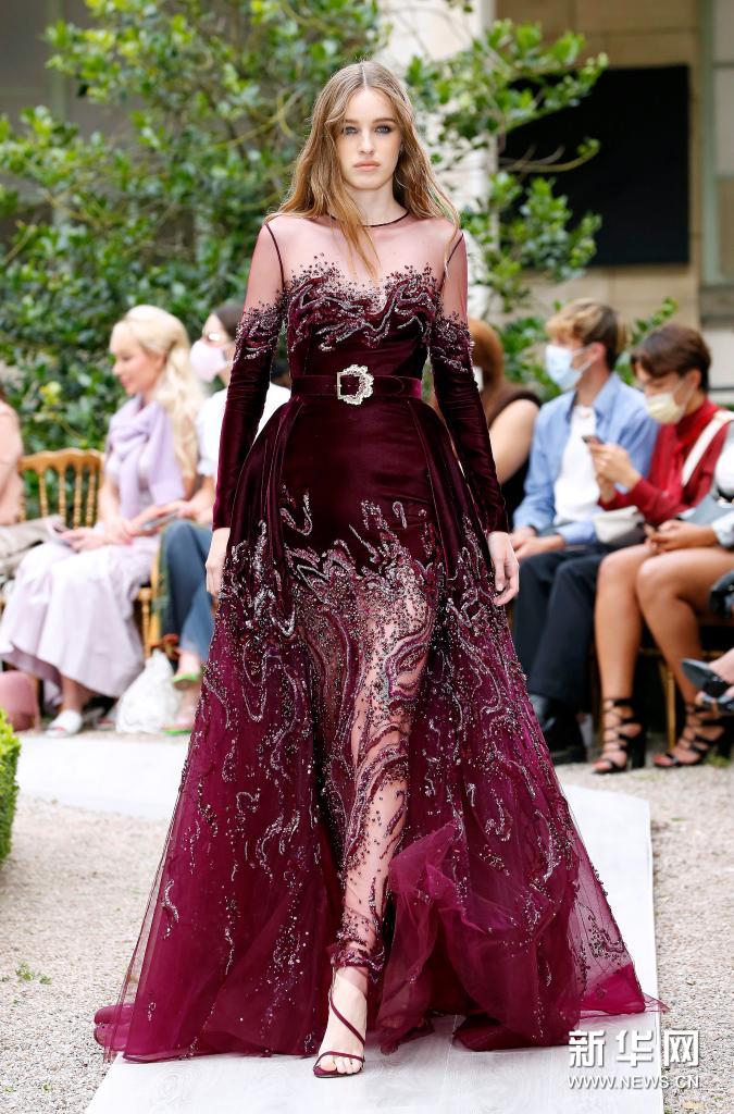 7月7日,模特在法國巴黎高級(jí)定制時(shí)裝周上展示Zuhair Murad品牌2021/2022秋冬新品。