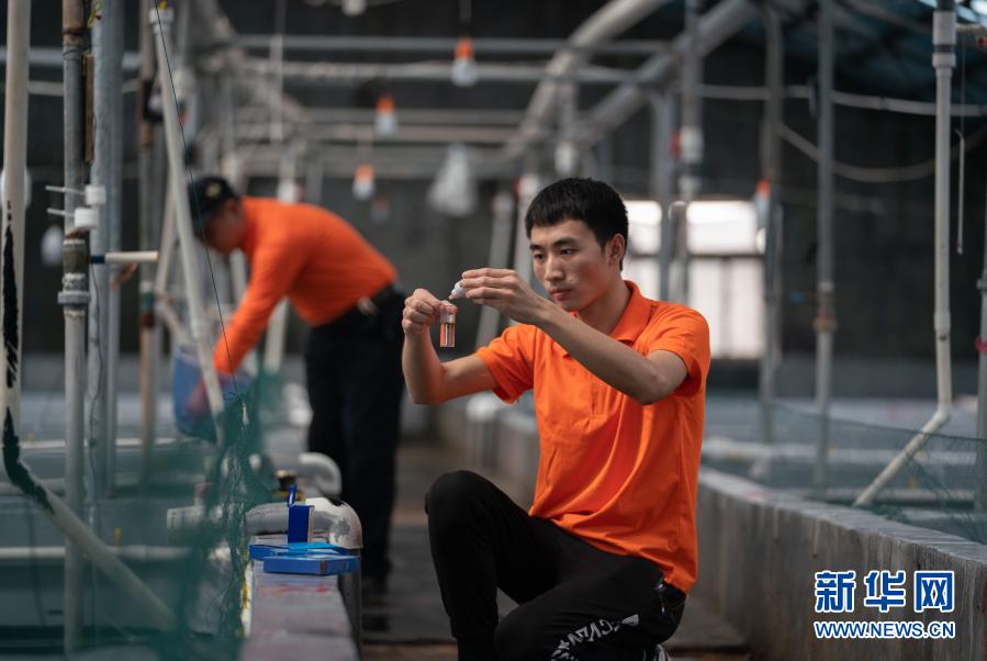 3月17日,河北省黃驊市一家養(yǎng)殖專業(yè)合作社的工人在檢驗水質(zhì)。近年來,河北省黃驊市根據(jù)自身產(chǎn)業(yè)基礎(chǔ),瞄準(zhǔn)市場調(diào)結(jié)構(gòu),走集約化發(fā)展、產(chǎn)業(yè)化經(jīng)營的現(xiàn)代漁業(yè)發(fā)展新路,推動以水產(chǎn)育苗業(yè)、養(yǎng)殖業(yè)等為代表的現(xiàn)代漁業(yè)發(fā)展,引領(lǐng)漁民轉(zhuǎn)產(chǎn)轉(zhuǎn)業(yè)和產(chǎn)業(yè)轉(zhuǎn)型升級。目前,黃驊漁區(qū)海水育苗養(yǎng)殖企業(yè)108家,直接提供就業(yè)崗位近5000個,年產(chǎn)值達(dá)8億元,現(xiàn)代漁業(yè)成為漁民增收致富的“新引擎”。