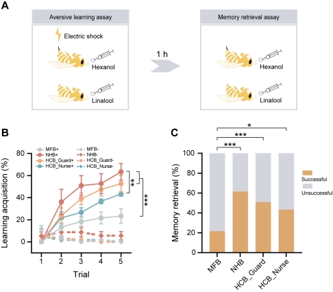 蜜蜂是重要的传粉昆虫,其防御行为对于维持蜂群的安全和稳定具有关键作用。伸针反应是蜜蜂在应对外界威胁时表现出的典型防御行为,通常由报警信息素诱发,而信息素的识别依赖于嗅觉感知。其形成过程与厌恶性学习与记忆密切相关。