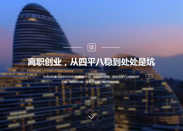 采訪臨近尾聲,天色已晚。但張偉與他的團隊似乎并沒有結(jié)束工作的打算。與他們告別后,走在SOHO大樓間的小道上,看著那一間間仍在挑燈奮戰(zhàn)的格子間,不禁感慨,一年后或者數(shù)年后,有多少人會還在這里堅持?有多少人會選擇新的出發(fā)點?又有多少人會幸運地突出重圍?