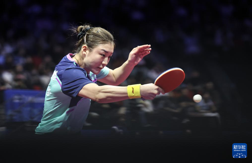 11月16日,黑龙江队选手王曼昱在比赛中回球。