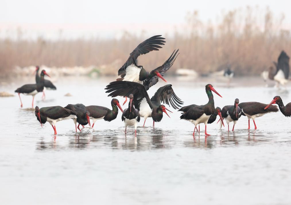 波光鏡影顯生趣 水鳥翔集繪冬日美景