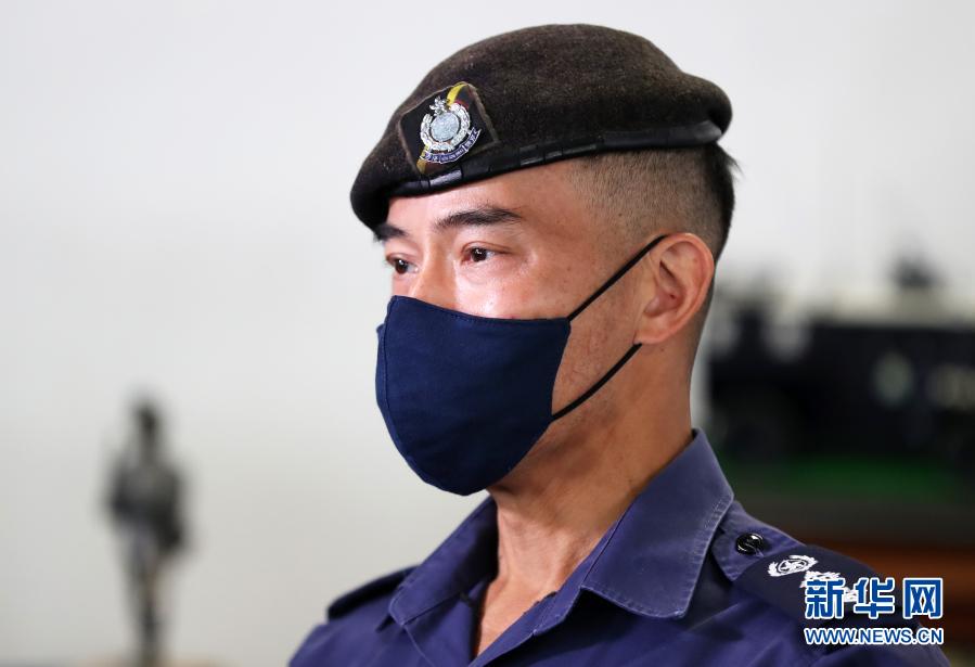 香港警務(wù)處警察機動部隊總部校長陳健國接受采訪(2月4日攝)。新華社記者 李鋼 攝