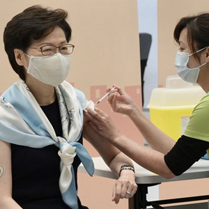 新華社香港3月22日電(記者韋驊)香港特區(qū)行政長官林鄭月娥22日與多名主要官員在特區(qū)政府總部接種第二針新冠疫苗,并呼吁市民踴躍支持疫苗接種計(jì)劃。