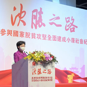 林鄭月娥說(shuō),本次展覽展示了不少香港各界參與國(guó)家脫貧攻堅(jiān)戰(zhàn)的故事,記錄了香港同胞如何為國(guó)家獻(xiàn)出力量和經(jīng)驗(yàn),相信香港市民參觀后都會(huì)對(duì)國(guó)家的成就和香港的貢獻(xiàn)感到自豪。