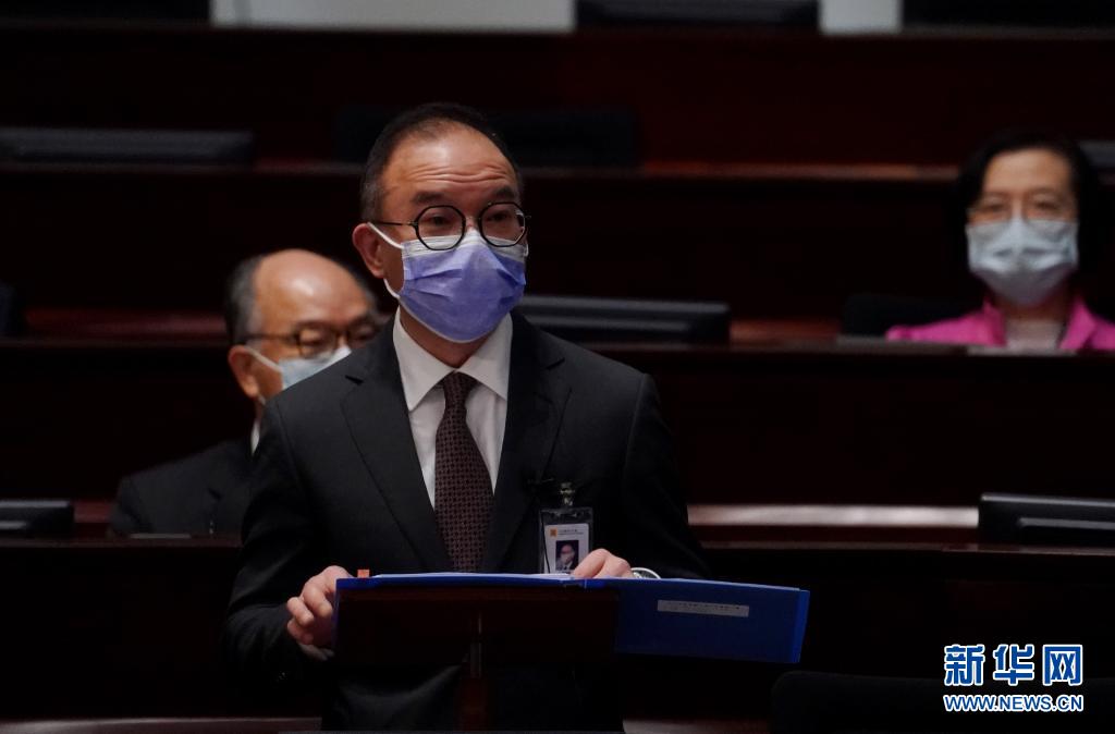 4月14日,香港特區(qū)政府政制及內(nèi)地事務(wù)局局長曾國衛(wèi)在立法會(huì)會(huì)議上?!⌒氯A社記者 呂小煒攝