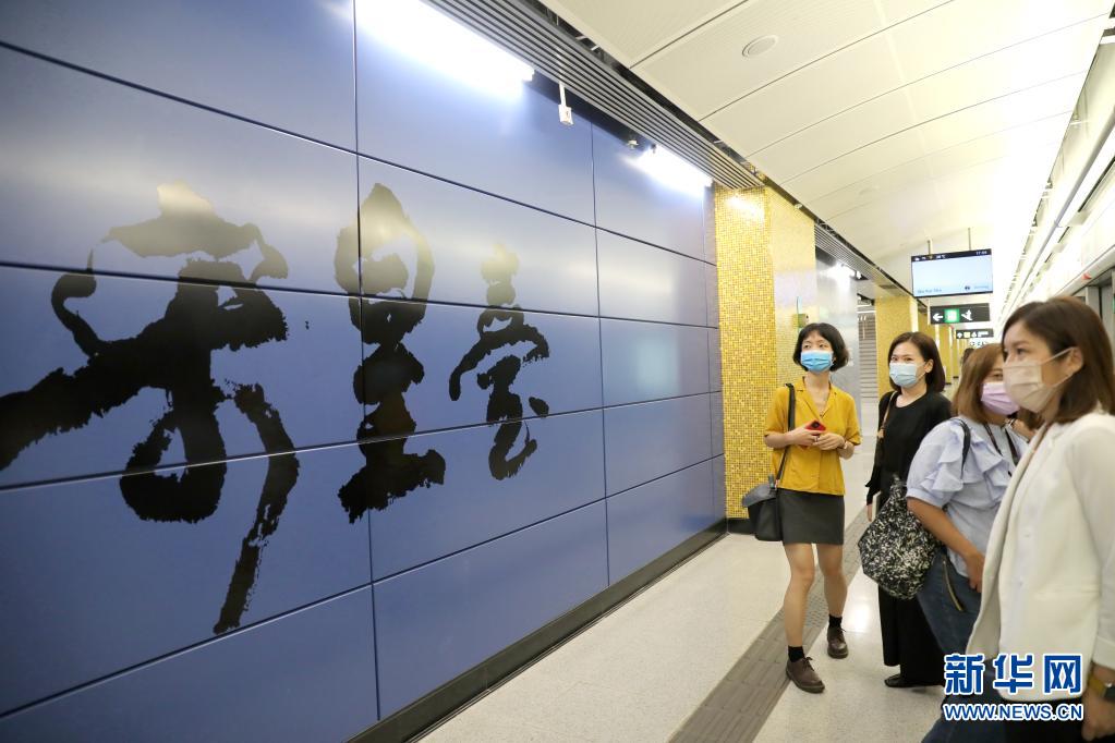 用傳統(tǒng)書(shū)法演繹的地鐵站站名“宋皇臺(tái)”(7月6日攝)。新華社記者 吳曉初 攝