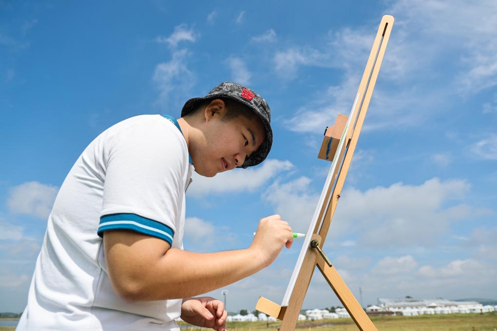 为帮他康复,父母尝试了乒乓球、轮滑、音乐等多种训练。美术课上,王剑书展现出对色彩的敏感,他选用的颜色看似大胆碰撞,搭配在一起却格外和谐舒适,充满灵动创意。老师将这个发现告诉王剑书的母亲,建议着重培养他的艺术能力。