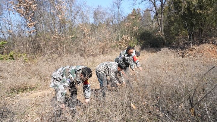 2月16日,在河南省南阳市淅川县太子山林场,护林队员对灌木进行清理。(受访对象供图)