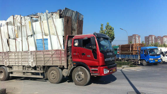 項目周圍基建設施雖然還算可以,路面較為寬廣,但附近的交通安全問題不容忽視。記者探訪時看到,項目南側大門外的道路上大卡車、大貨車橫行,而道路距離最近的樓座不到10米。