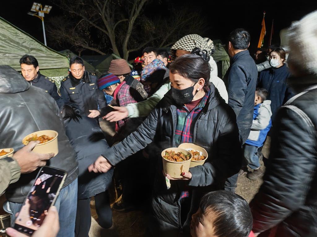 电尕镇镇长张叫林介绍,地震发生后,当地干部立即响应,迅速将群众疏散到广场等空旷地带,之后又对受损房屋进行初步摸排,并与赶来的救援力量一道搭建临时安置点。在救灾过程中,他们及时对受灾群众进行心理疏导,不仅确保群众吃饱住暖,而且要让群众安心过夜。