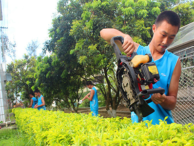 官兵修剪警營綠化帶
