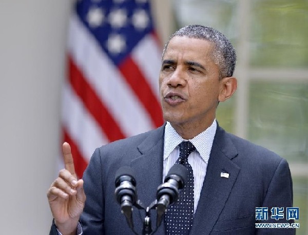 ??? 資料圖:2014年5月27日,美國(guó)總統(tǒng)奧巴馬在華盛頓白宮就從阿富汗撤軍問題發(fā)表講話。美國(guó)總統(tǒng)奧巴馬27日宣布,有意在今年底北約作戰(zhàn)部隊(duì)撤離后在阿富汗部署大約9800名美軍。 新華社記者殷博古攝