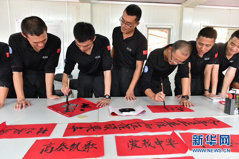 ????2月4日,在新春佳節(jié)來臨之際,第三支赴利比里亞維和警察防暴隊(duì)組織隊(duì)員開展“寫春聯(lián) 迎新春”活動。