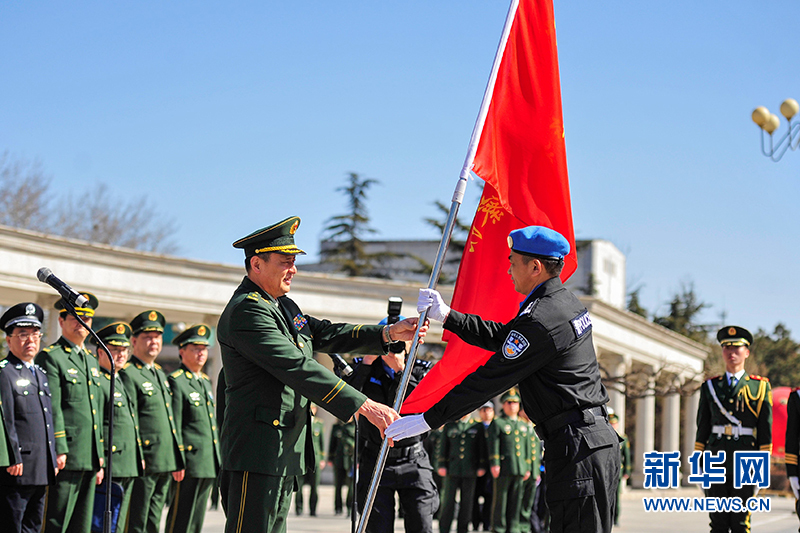 ????10日,中國(guó)第四支赴利比里亞維和警察防暴隊(duì)在中國(guó)維和警察培訓(xùn)中心舉行出征儀式。公安部邊防管理局局長(zhǎng)陳定武為防暴隊(duì)授旗并講話。中國(guó)人民武裝警察部隊(duì)學(xué)院院長(zhǎng)馬金旗、政委李樂民,公安部邊防管理局副局長(zhǎng)徐寬宥,公安部國(guó)際合作局副局長(zhǎng)徐乃剛,公安部維和警察領(lǐng)導(dǎo)小組成員單位負(fù)責(zé)人等出席出征儀式,為防暴隊(duì)送行。