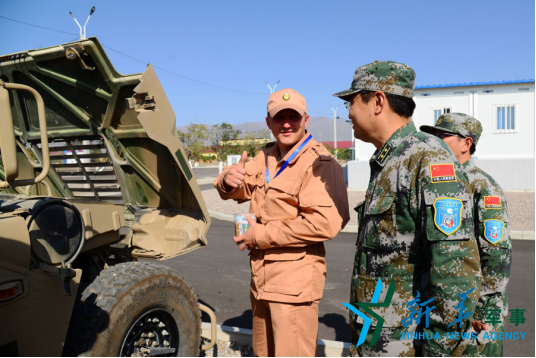 俄羅斯軍官參觀中國(guó)野戰(zhàn)救護(hù)車。