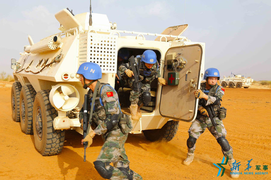2014年10月20日,中國(guó)第二批赴馬里維和警衛(wèi)分隊(duì)實(shí)施行進(jìn)間處突演練——范存印攝