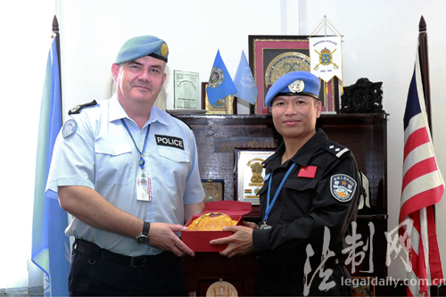 ????藍(lán)隊(duì)長(zhǎng)向總警監(jiān)匯報(bào)了中國(guó)防暴隊(duì)編成、物資裝備、甄選考核以及抵達(dá)任務(wù)區(qū)后執(zhí)行維和勤務(wù)等情況,介紹了中國(guó)防暴隊(duì)在部隊(duì)正規(guī)化建設(shè)、治安形勢(shì)研判、后勤綜合保障等方面經(jīng)驗(yàn)做法,并表示將恪守聯(lián)合國(guó)核心價(jià)值,堅(jiān)決服從聯(lián)利團(tuán)指揮鏈條,嚴(yán)格落實(shí)防暴辦下達(dá)的各項(xiàng)指令任務(wù),繼續(xù)保持和發(fā)揚(yáng)中國(guó)維和警隊(duì)紀(jì)律嚴(yán)明、敢打硬仗的優(yōu)良傳統(tǒng)。