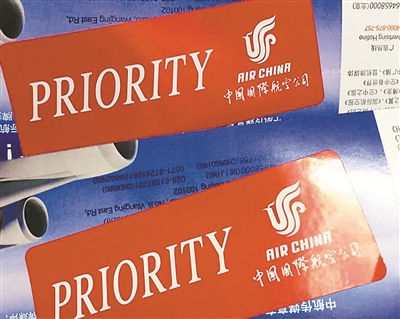 貼在登機牌后的優(yōu)先標志。記者 鄒菲 攝