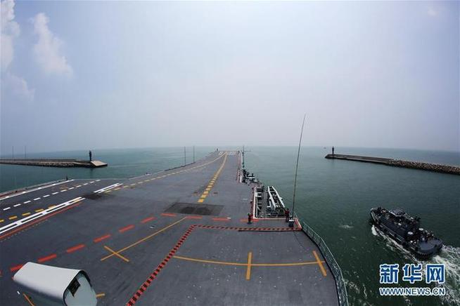 6月25日,遼寧艦駛出青島某航母軍港。新華社記者曾濤攝