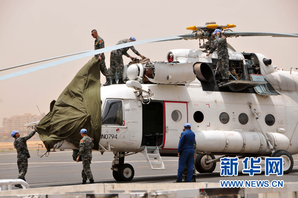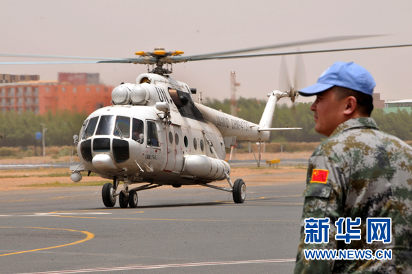 ?。吩拢常比?,中國(guó)首批維和直升機(jī)分隊(duì)在蘇丹喀土穆國(guó)際機(jī)場(chǎng)成功首飛。