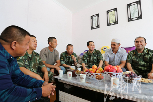 圖為邊防官兵與民族親戚嘮家常