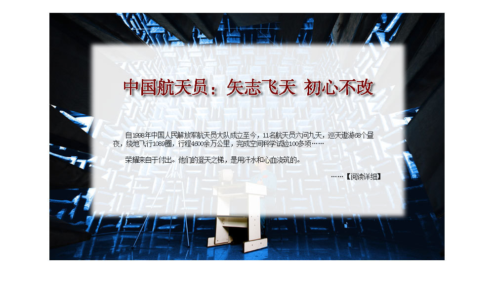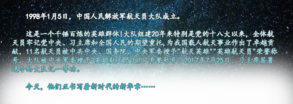 ??? 寧可備而不用,決不用而無備。1998年,我和其他14名戰(zhàn)友一起,懷著對載人航天事業(yè)的無限熱愛和憧憬,義無反顧地投身這一承載著中華民族千年飛天夢想的偉大事業(yè)。我先后入選神十、神十一飛行任務(wù)乘組梯隊(duì),但每一次都與飛天失之交臂。直到今天,我和戰(zhàn)友們一樣,還在堅(jiān)持不懈地開展訓(xùn)練。因?yàn)槲抑?,無論是否執(zhí)行飛行任務(wù),任務(wù)的成功就是我的成功,戰(zhàn)友在天上的表現(xiàn)就是我的表現(xiàn),我愿永遠(yuǎn)做筑夢九天的基石,為建設(shè)航天強(qiáng)國當(dāng)好陪練,守望初心,堅(jiān)守寂寞。?