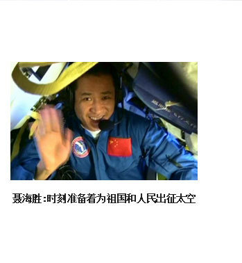 ??? 時(shí)刻準(zhǔn)備著,將祖國的榮耀一次次寫滿太空。在我加入航天員大隊(duì)后,有2件事深深地烙在我的腦海中。一是,一位老華僑在神舟五號任務(wù)成功后,含淚而說的“你們航天員飛得有多高,我們海外游子的頭就能昂多高”。二是,我們面對國旗許下的誓言,“為祖國的載人航天事業(yè)奮斗終身”。我始終以嚴(yán)慎細(xì)實(shí)的精神,以時(shí)不我待的狀態(tài),腳踏實(shí)地、努力學(xué)習(xí)、刻苦訓(xùn)練,以實(shí)際行動踐行諾言,用一生的執(zhí)著與追求,時(shí)刻準(zhǔn)備著,將祖國的榮耀一次次寫滿太空!?
