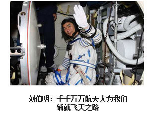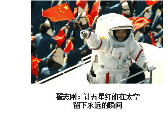 ??? 漫步太空、紅旗永駐。2008年9月27日16時(shí)43分,浩渺太空,敞懷相迎,我在戰(zhàn)友伯明、海鵬的協(xié)助和支持下,打開軌道艙艙門,邁出了中國人在茫茫太空中的第一步。在19分35秒的艙外活動中,我隨飛船一起飛過了9165公里,成為中國“飛得最高、走得最快”的人。然而,成功并不代表成熟,一切仍要從零開始。后續(xù)的空間站任務(wù)、登陸月球……路還很長,挑戰(zhàn)還很多,需要付出和努力的也還很多。對于我來說,沒有停歇的腳步,只有奮進(jìn)的號角。
